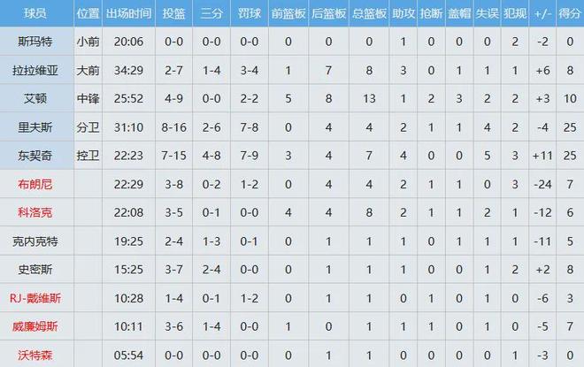 太阳全队数据如下: